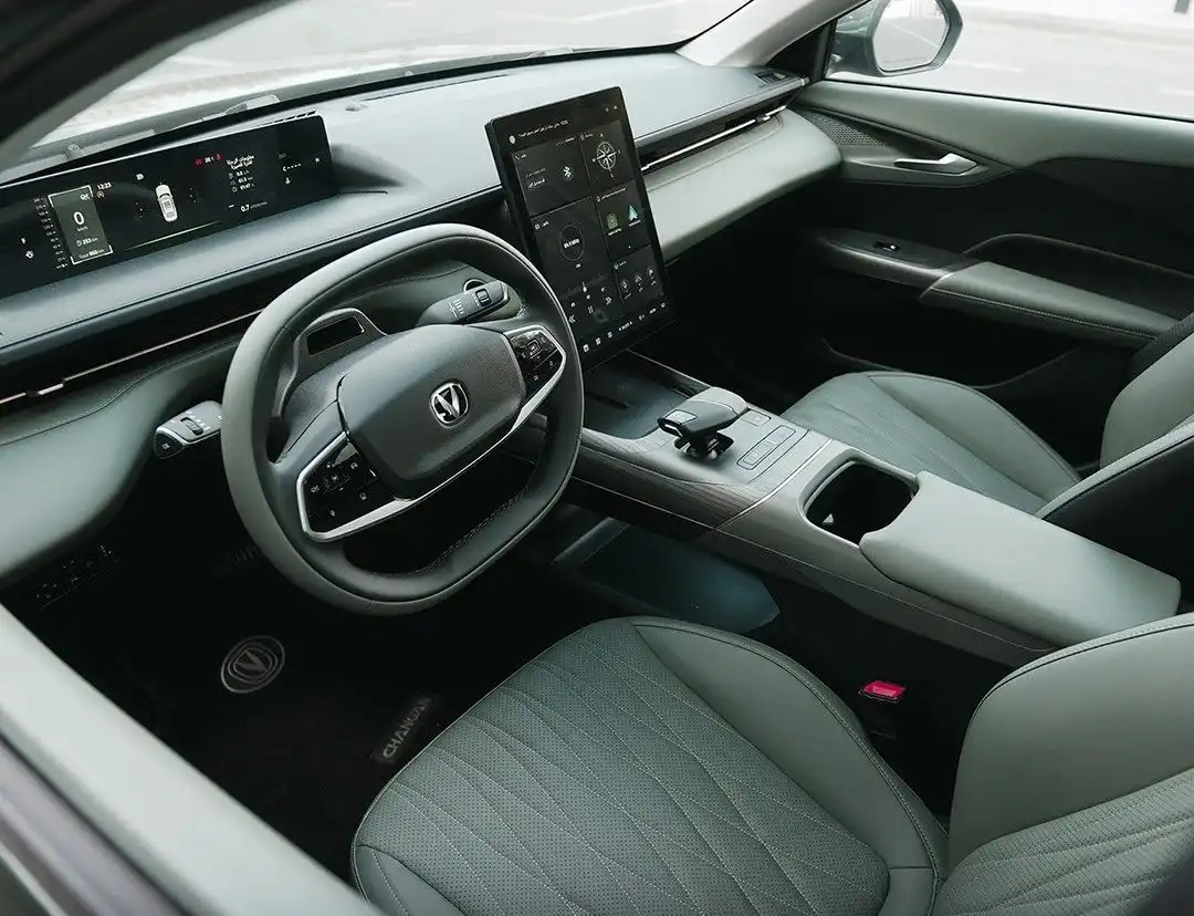 في الداخل، تتوفر شاشة ترفيه مقاس 13.2 بوصة، مع دعم لتقنيات Apple CarPlay وAndroid Auto. كما تتوفر عجلة قيادة جلدية بأزرار تحكم، ومفتاح ذكي، وتشغيل السيارة بزر، وتشغيلها عن بعد، وعدادات تتراوح بين 10 إلى 10.25 بوصة، ومقاعد جلدية بألوان أخضر أو بيج، وتكييف أوتوماتيك، وفتحات تكييف خلفية، وتعديل مقعد السائق كهربائياً في 6 اتجاهات، ومقاعد الراكب الأمامي بـ 4 اتجاهات، وتهوية لمقعد السائق والراكب، ومسند يد. كما تأتي بنظام المراقبة والتحكم داخل السيارة باستخدام الإيماءات بدون اتصال بالإنترنت وكاميرا مراقبة الأطفال بدون اتصال بالإنترنت.