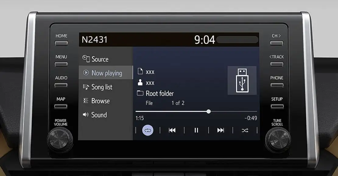 يقدم تويوتا RAV4 تصميمًا أكثر توجهًا نحو الإبداع. تندمج شاشة اللمس بقياس 8 بوصات بسلاسة مع فتحة التهوية المركزية، مما يخلق تأثيرًا طبقيًا مع لوحة التحكم الرئيسية أدناه. على الرغم من أن هذا التصميم لا يزال مستمدًا من هيكل على شكل حرف T متناسق، فإن الحواف المطلية بالكروم حول فتحات التهوية وناقل الحركة ومقابض الأبواب تخلق عمقًا وأبعادًا أكثر. يشمل ذلك جوانب ثلاثية الأبعاد محسنة في مناطق مثل لوحة التكييف وناقل الحركة. بالمقارنة، يمتد تغطية الجلد في RAV4 إلى مناطق أكثر، بما في ذلك ألواح الأبواب.