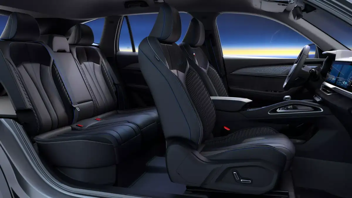 The vehicle is equipped with massive 20-inch wheels, in addition to a luxurious interior with blue stitching and three 12.3-inch screens, which include the driving instruments and entertainment systems, similar to those found in Geely cars.