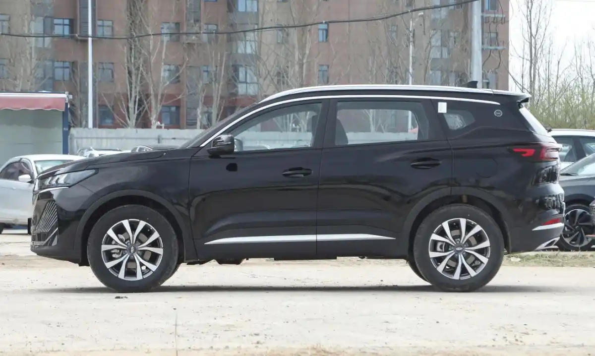 The dimensions of the Chery Tiggo 7 2024 are 4500 mm in length, 1842 mm in width, and 1746 mm in height, with a wheelbase of 2670 mm. The side profile has not changed significantly from the old model, except for an update of the trim color from black to silver. The new vehicle comes with 17 or 18-inch wheels, with tire specifications of 225/65 R17 and 225/60 R18.