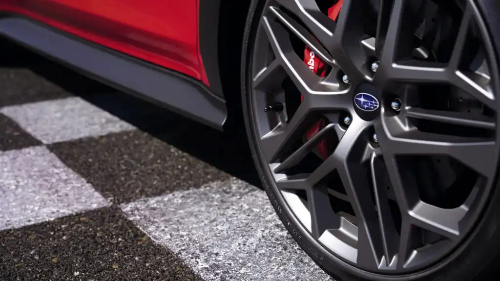 The WRX TR comes with a series of important modifications in the depths of the vehicle, equipped with red Brembo brakes, larger brake discs, and a bigger master cylinder. Subaru claims that the benefits extend beyond just improved stopping power, providing a superior pedal feel.