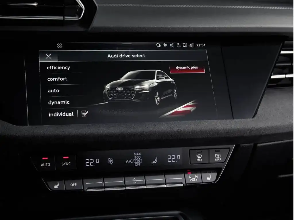 The driver can control the settings of many electronic chassis systems using the drive mode selector, which on the updated S3 gains a new Dynamic Plus mode. This mode also influences the engine by raising the idle level for improved throttle response, and makes the transmission deliver later upshifts and earlier downshifts.