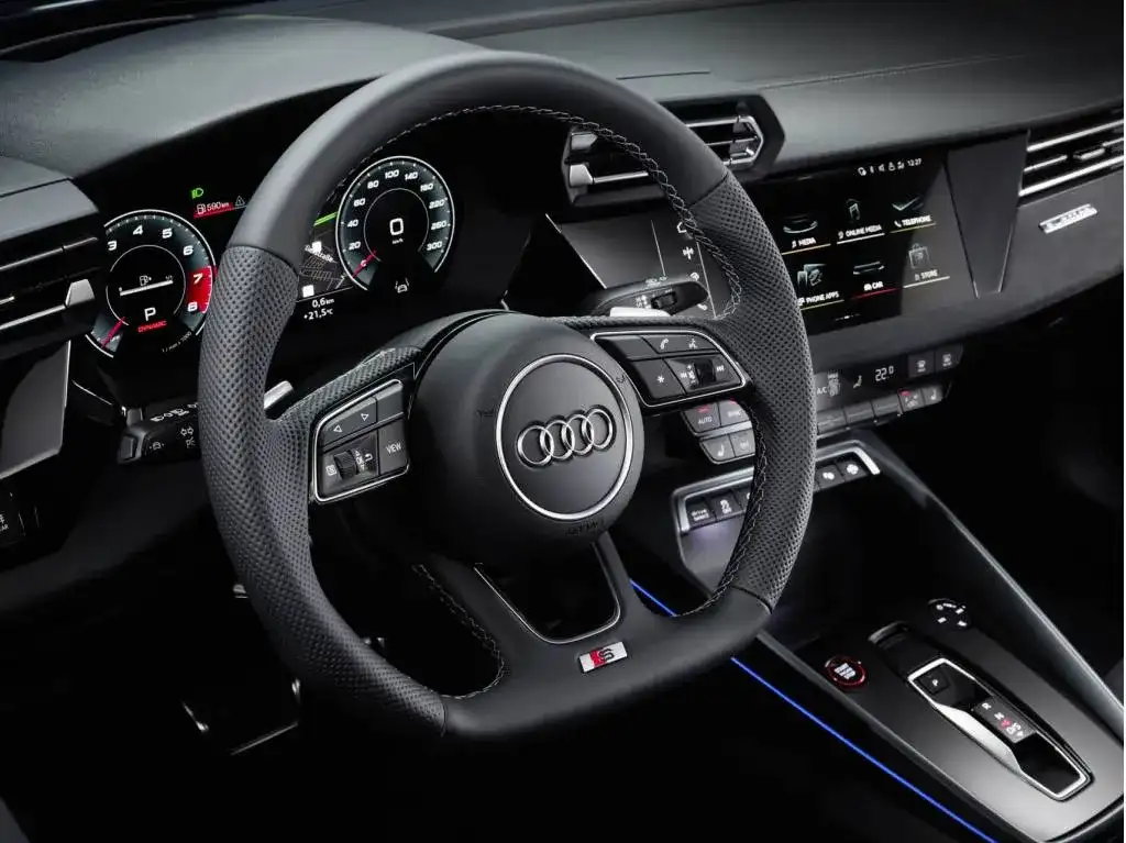 To enhance handling, the S3's McPherson strut front suspension features a new pivot bearing that enables more negative wheel camber. Together with stiffer wishbones, the updated S3 delivers improved grip and control during aggressive cornering, according to Audi. Adaptive dampers are available.
