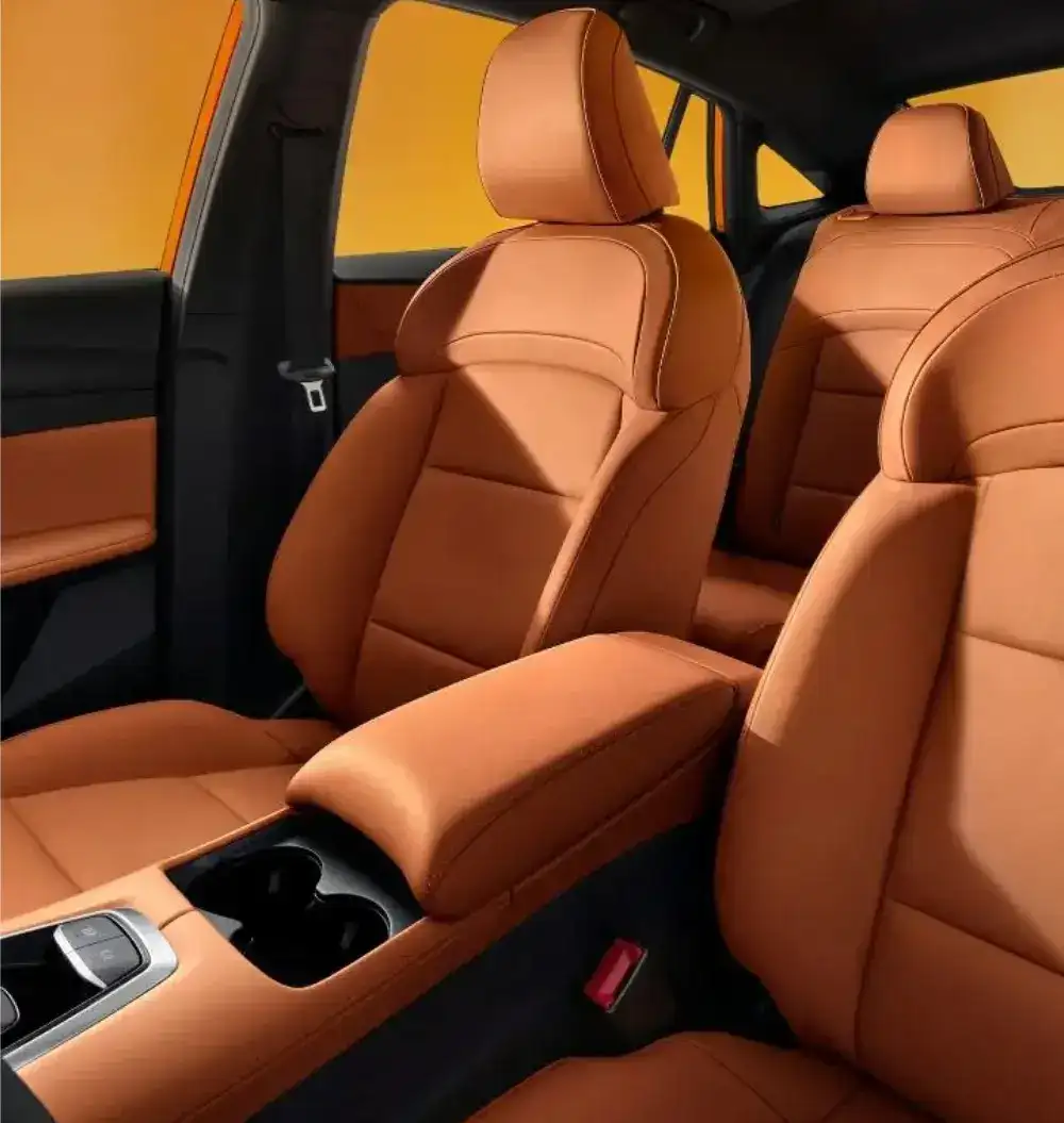 The seats are upholstered in a mix of leather and fabric, striking a balance between comfort and durability while providing solid lateral support. Higher end trims also benefit from a premium sound system featuring eight high fidelity speakers. Ambient lighting with 256 adjustable colors enhances the mood inside the cabin, dynamically shifting with music rhythms or ambient lighting conditions.