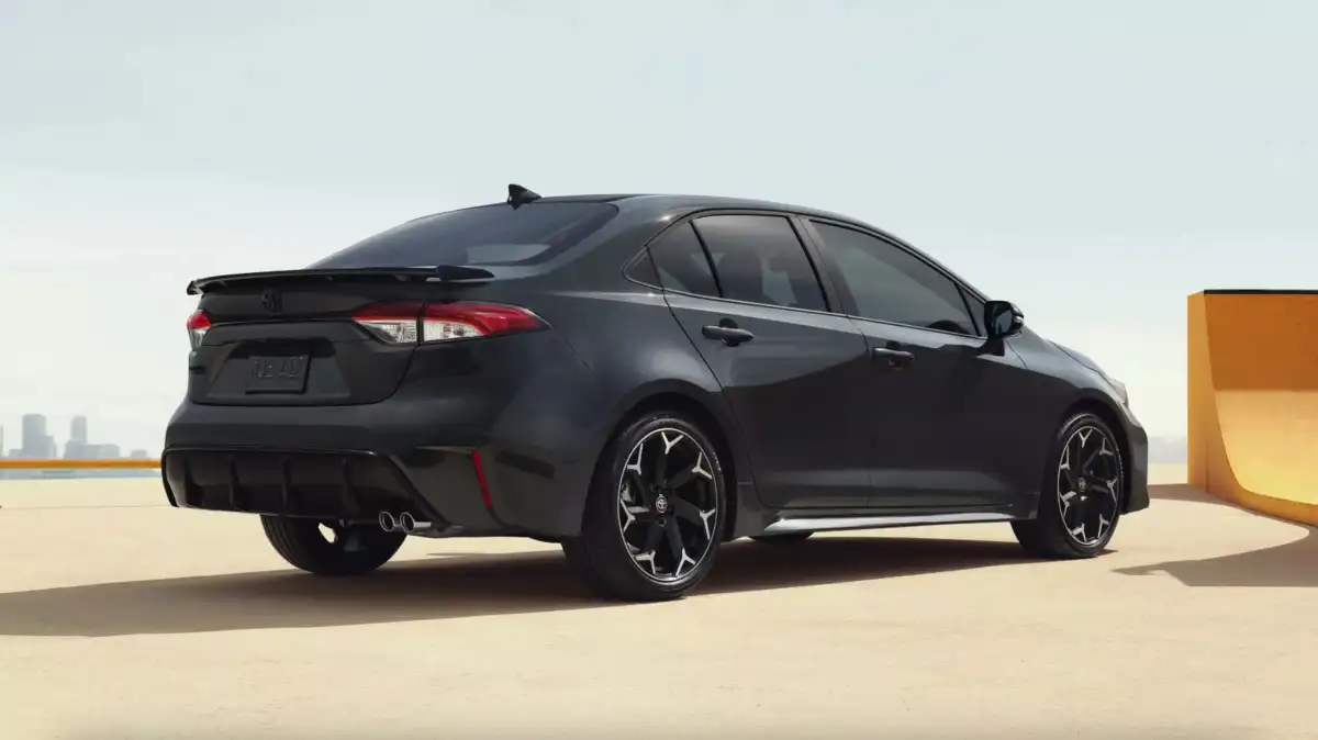 The exterior design of the new Corolla reflects a compact version of the Toyota Crown. It features Toyota's signature hammerhead front end, with sleek, elongated headlights and a wider air intake grille for a modern and dynamic appearance. The rear design is also inspired by the Crown, with wraparound tail lights and a uniquely sculpted tailgate.