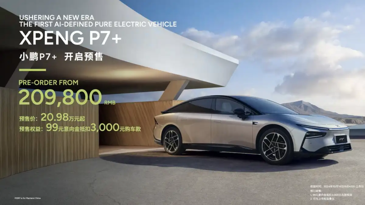 On the first day of the 2024 Paris Motor Show, Xpeng Motors kicked off its Global Strategy 2.0 with a compelling launch event. As a key highlight of the conference, the Xpeng P7+ sedan with full application of AI technology officially opened for pre-sale, with a starting price of RMB 209,800.