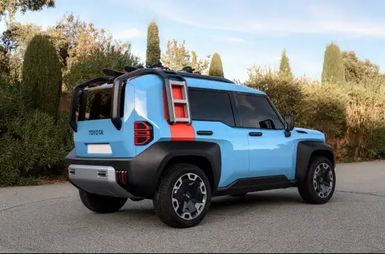 The side profile is expected to mirror the Prado's trapezoidal window design, offering a wider side view for improved off-road visibility. Rugged fender flares will highlight its off-road nature. The rear doors may feature color accents inspired by the Compact Cruiser EV concept, paying homage to the previous-generation FJ Cruiser’s open-door design.