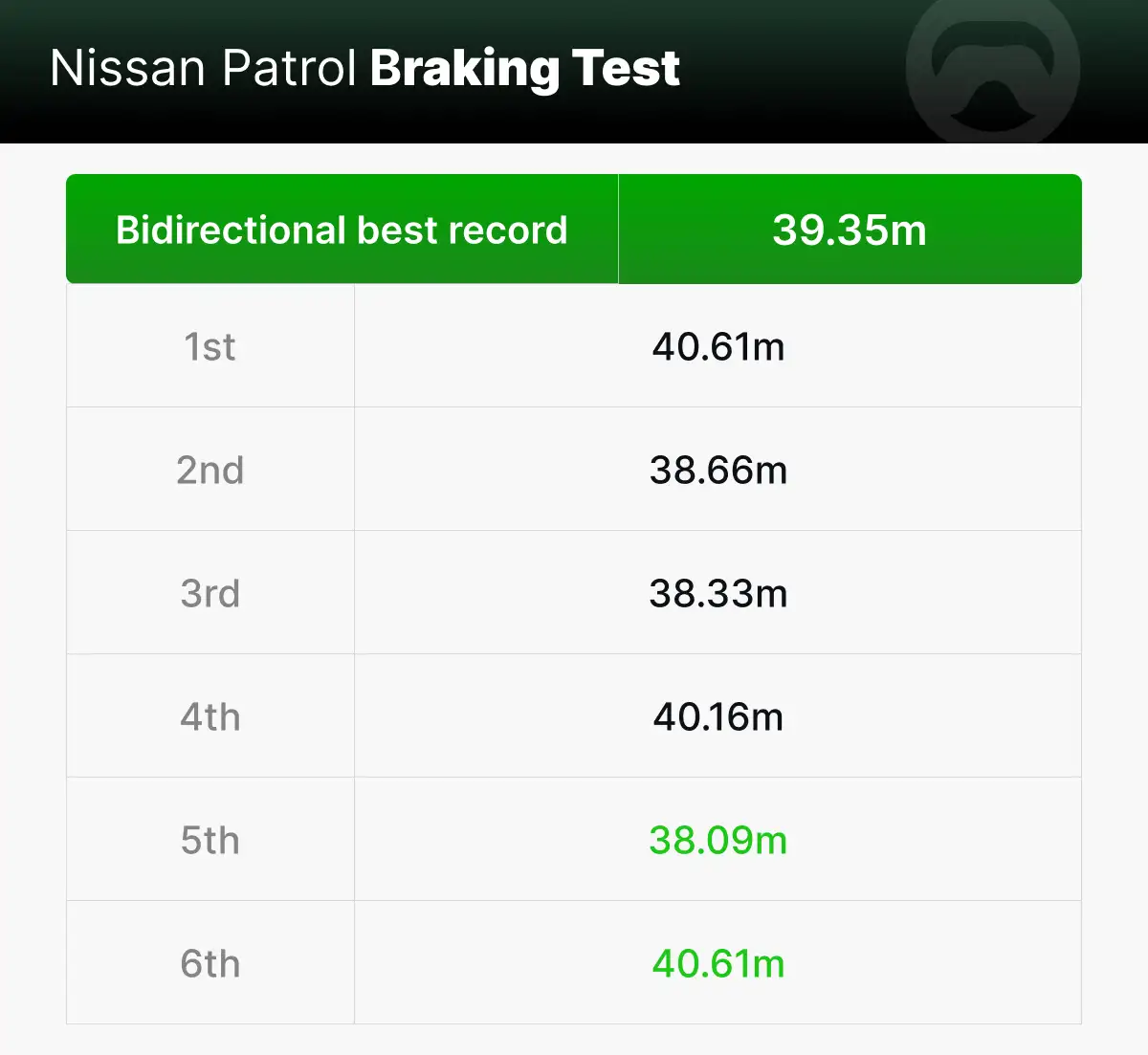 Patrol braking test: 6 pts / 39.35m