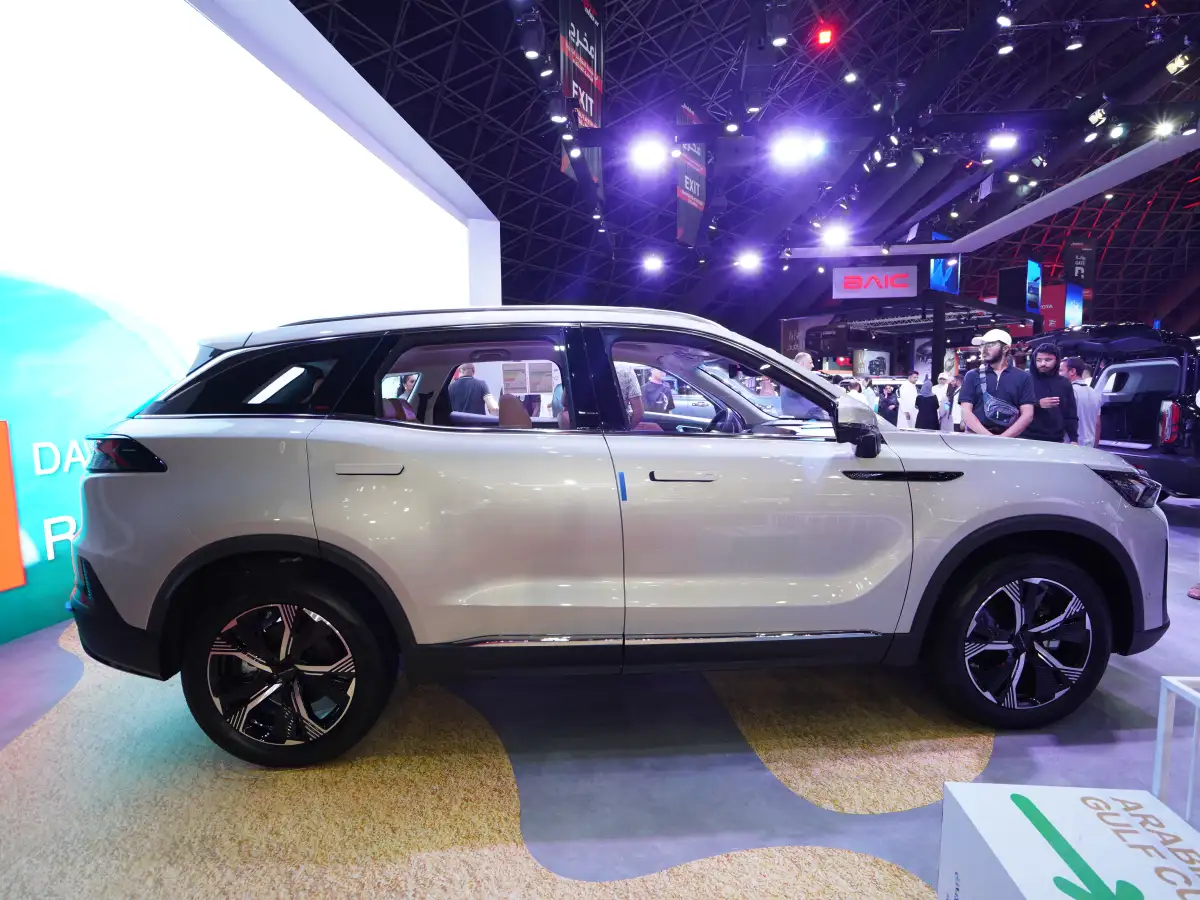 The BAIC X7 boasts a bold, muscular silhouette that resonates deeply with Saudi Arabia's automotive culture. Its front fascia — featuring a wide-mouth grille, split LED headlights, and sculpted hood — radiates the confidence that Middle Eastern roads demand.