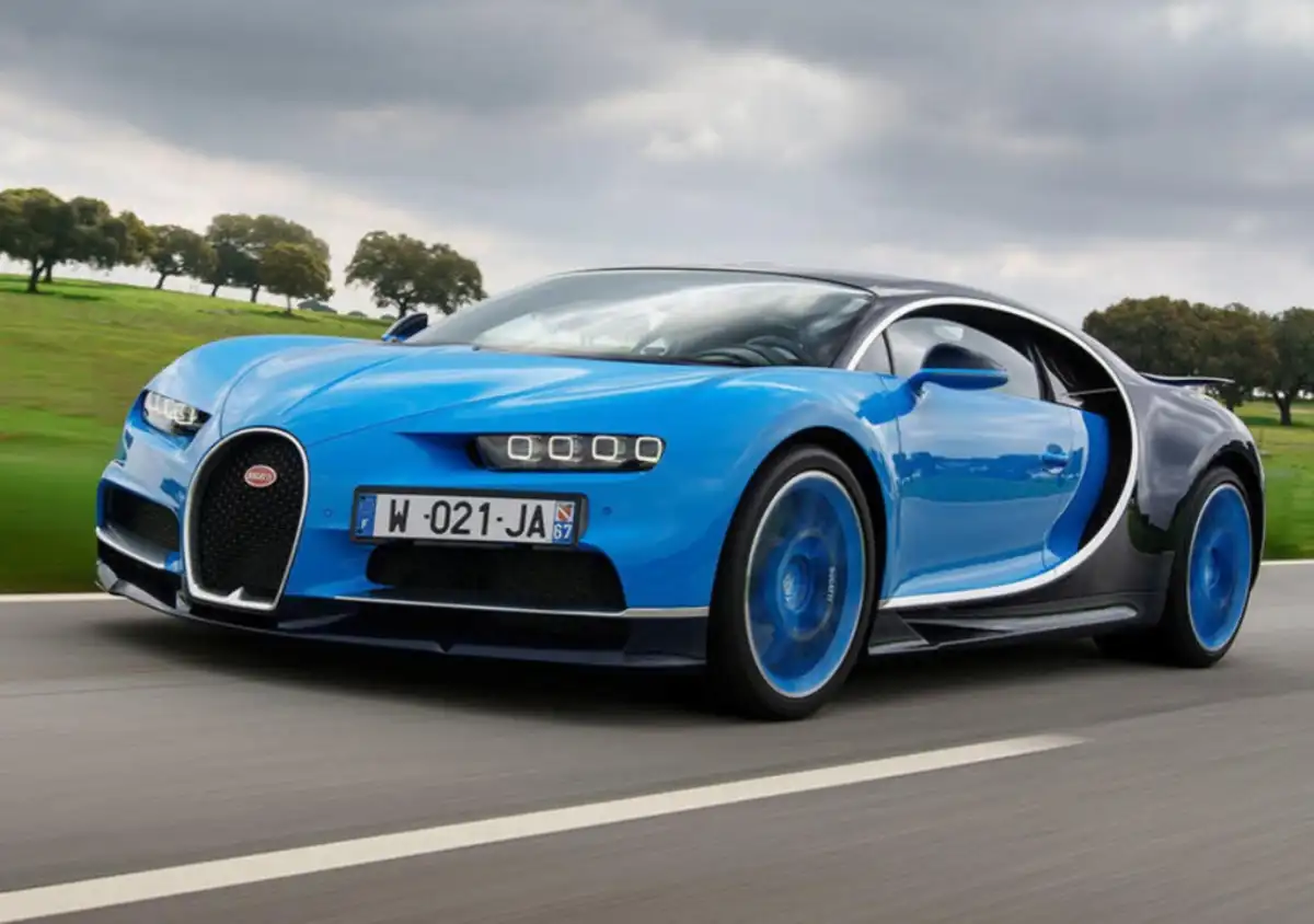 The Chiron boasts a quad-turbocharged 8.0L W16 engine, generating 1,500+ horsepower and 1,600 Nm torque, reaching 0–100 km/h in 2.4 seconds with a max speed of 440 km/h.