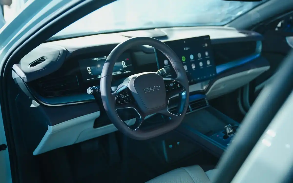 Inside, the cabin blends luxury with intelligent design. Premium Nappa leather wraps the seats, while a 15.6 inch rotating infotainment screen powered by BYDEgypt BYDUAE BYDKSA BYDOman BYDBahrain BYDQatar BYDKuwait BYD’s DiLink system takes center stage. A 10.25 inch digital instrument cluster and a 12 inch head up display provide the driver with essential data in an immersive, intuitive layout.
