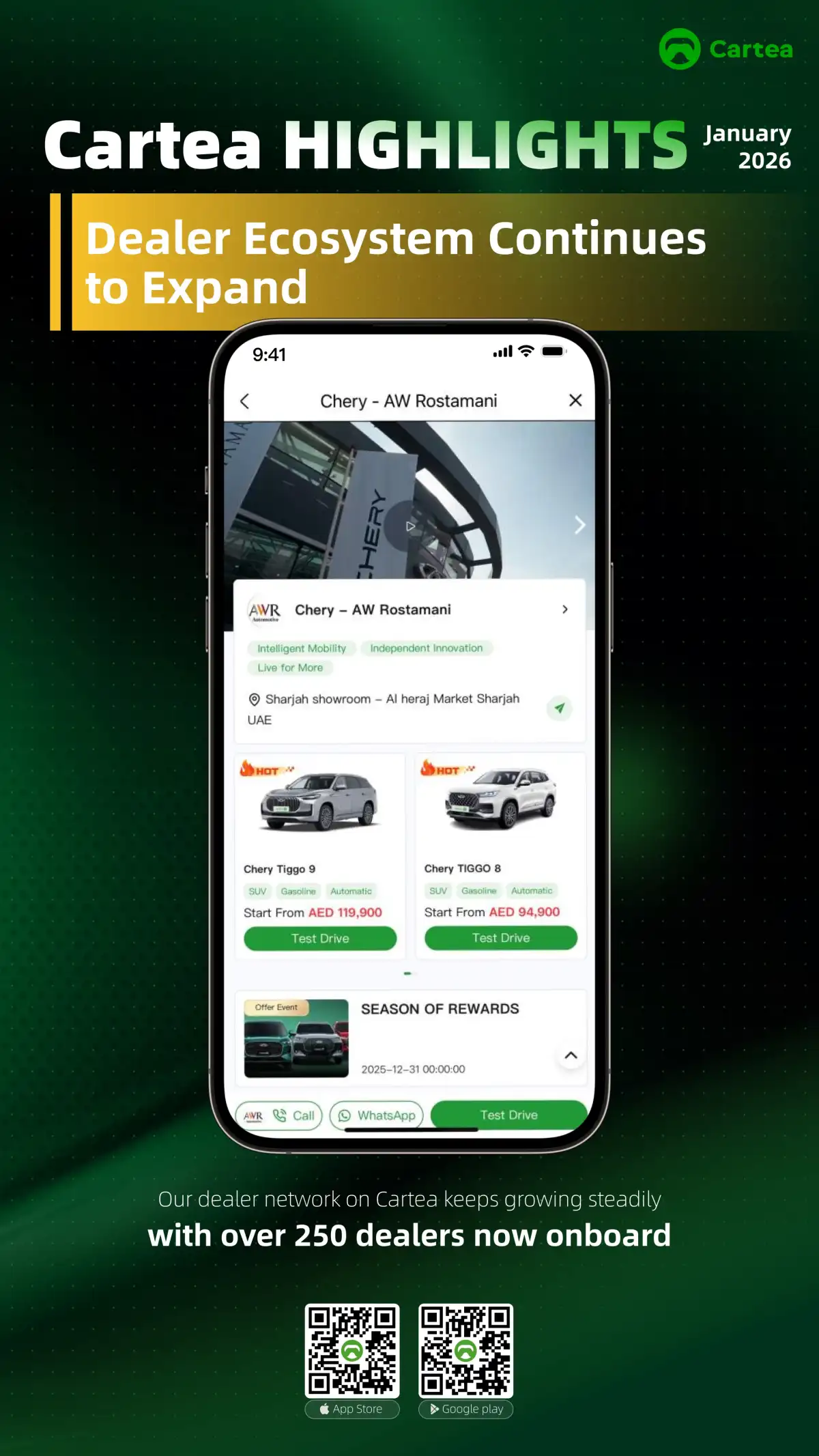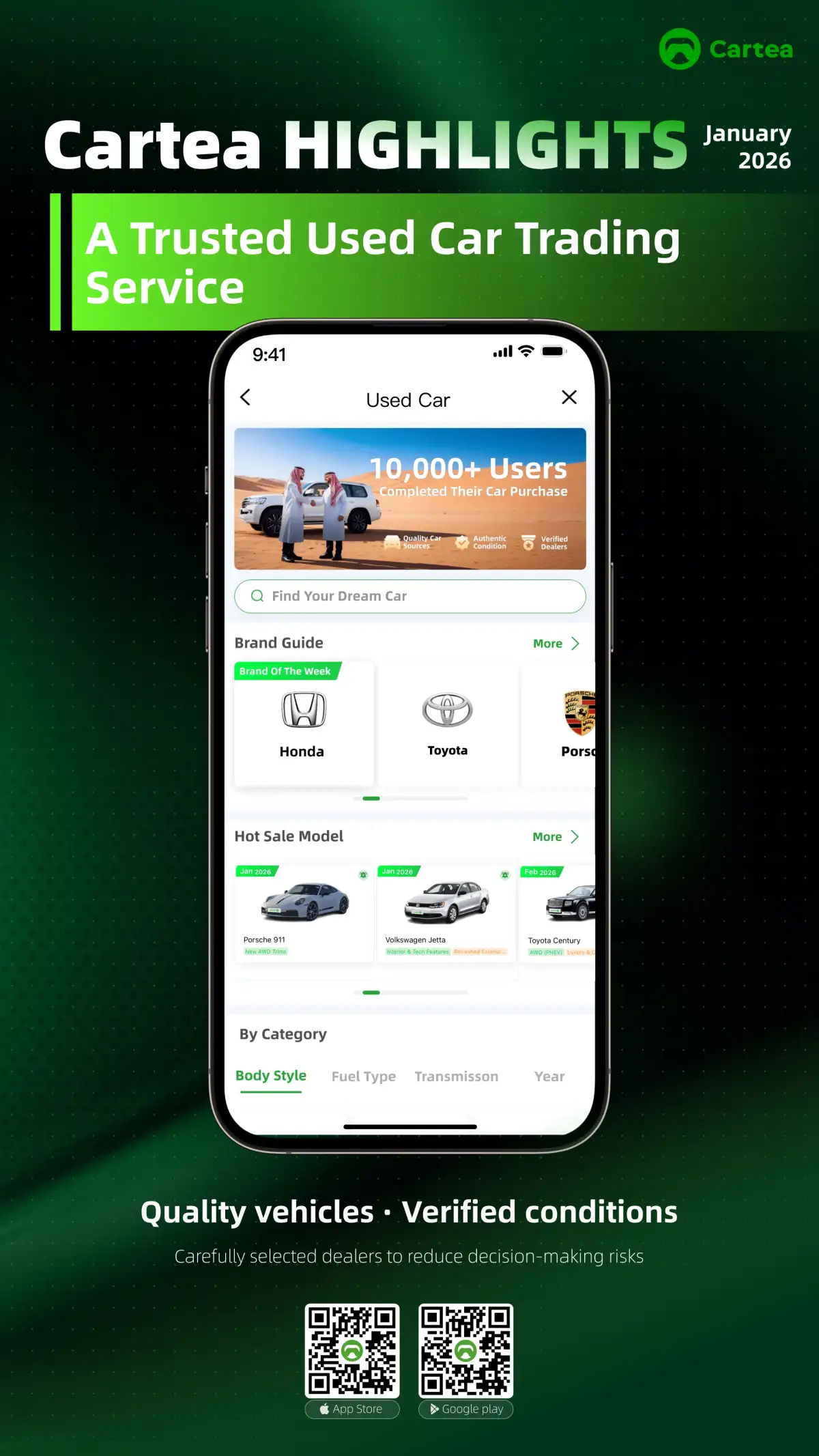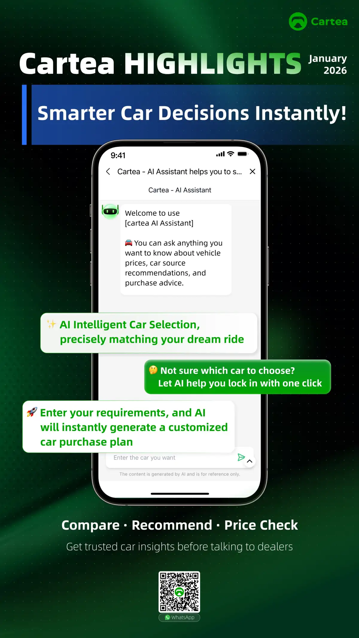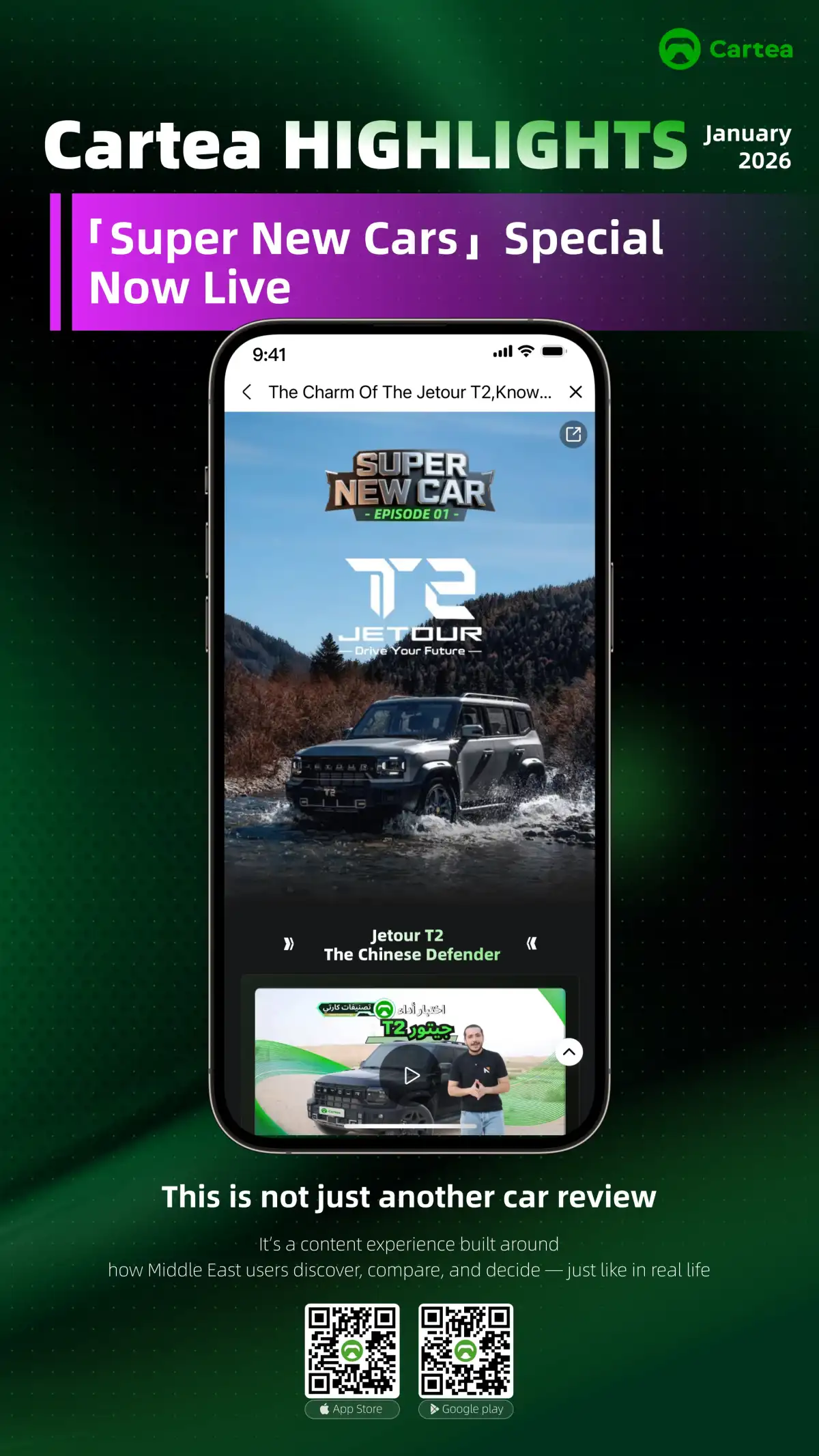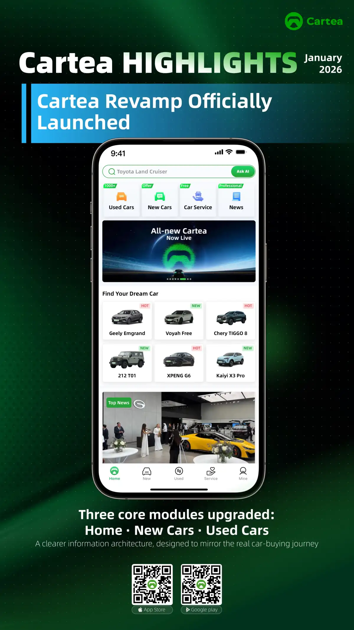 Platform revamp · Efficiency upgrades · Content evolution · Brand collaboration From car discovery to transaction services, Cartea continues to evolve. A quick recap of Cartea’s key updates and milestones in January, with a preview of major feature launches coming in February.