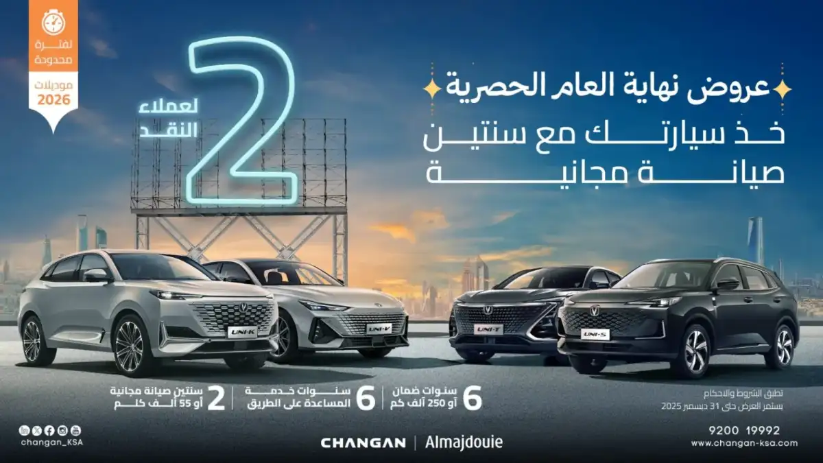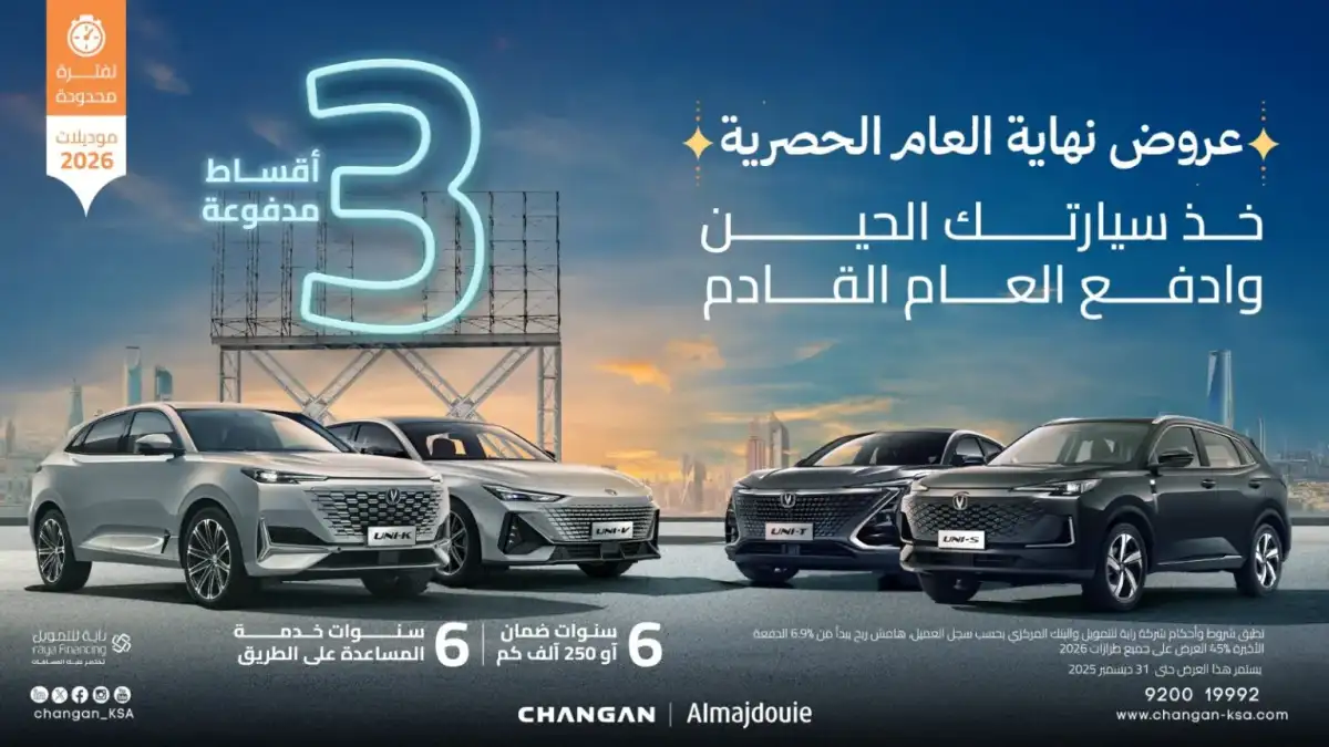 ChanganBahrain ChanganEgypt ChanganKSA ChanganKuwait ChanganOman ChanganQatar ChanganUAE Changan continues to strengthen its presence in the Saudi market through a special package of offers launched for the end of 2025, targeting both financing and cash buying customers. The announcement comes from Changan’s authorized dealer in the Kingdom, Al Majdouie, introducing clear benefits and well structured terms covering 2026 models, with a strong focus on easier ownership and reduced financial pressure during the early period of use. These offers align with local market expectations in Saudi Arabia and the Gulf, where buyers seek added value through warranty coverage, maintenance, and long term support.