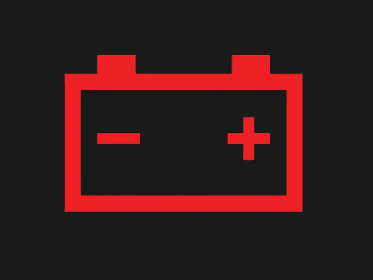 The battery light, depicted as a red battery icon, means the engine is running solely on battery power without alternator support. If this light stays on while driving, it may indicate a charging system failure. The vehicle could shut down once the battery is depleted, so immediate inspection is essential.