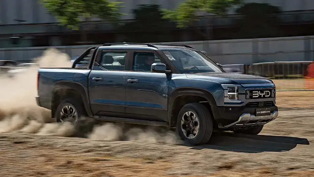 The BYD Shark 6 relies on an advanced hybrid setup that pairs a 1.5 liter turbocharged gasoline engine with two electric motors, one at the front and one at the rear, delivering a total output of 430 hp and 650 Nm of torque. Power is sent through an E-CVT automatic transmission, enabling the pickup to sprint from 0 to 100 km/h in just 5.7 seconds.