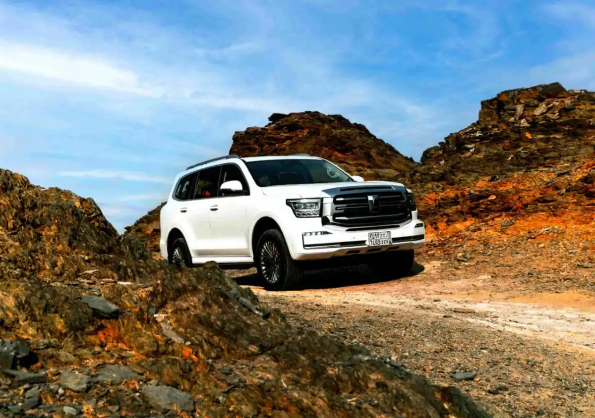 Weight between 2455–2535 kg, with 224 mm ground clearance for all-terrain capability in Saudi landscapes.