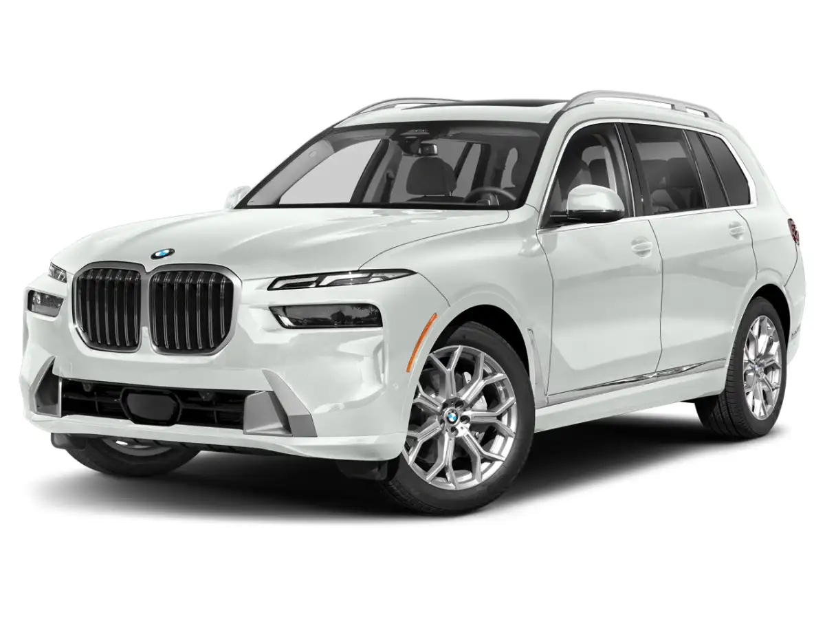 The BMW X7 maintains the family design style of the BMW X series, featuring a large front grille and 'angel eye' headlights.