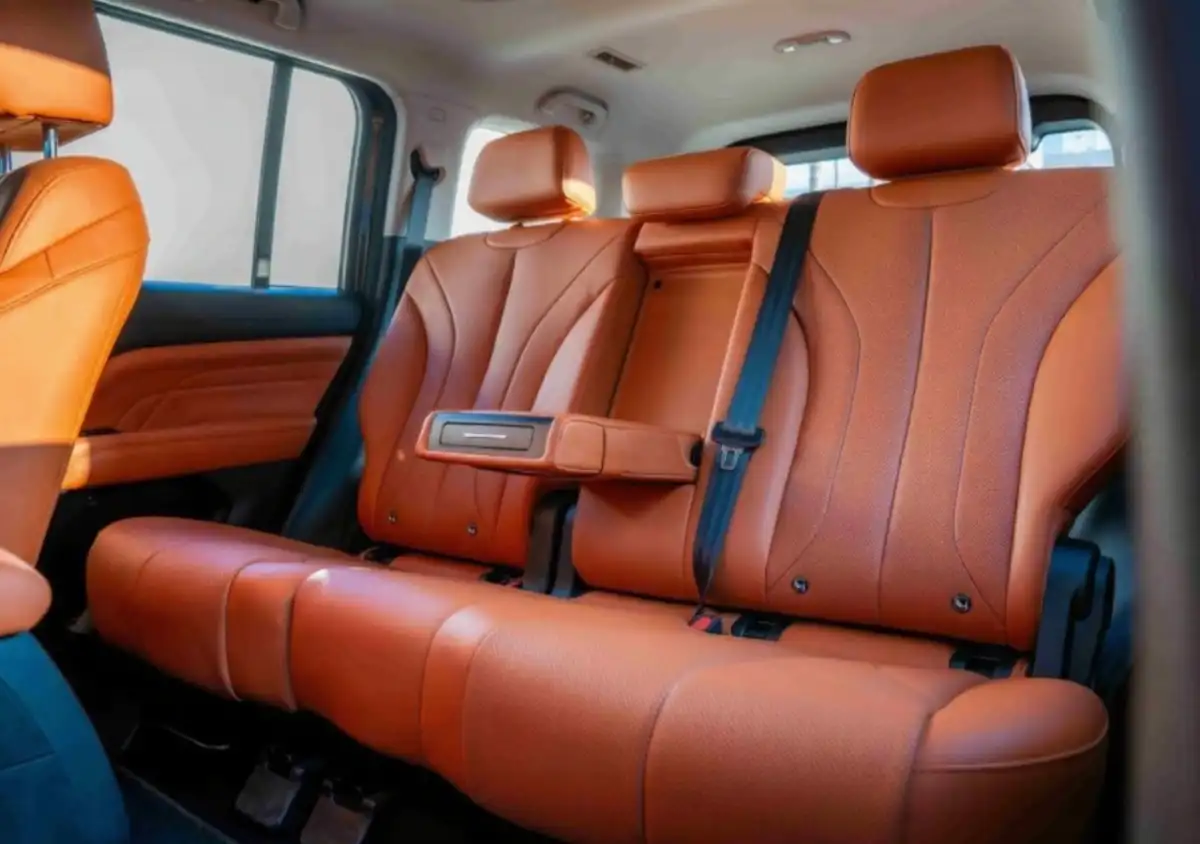 Spacious cabin for seven passengers with premium leather and comfort-focused appointments.