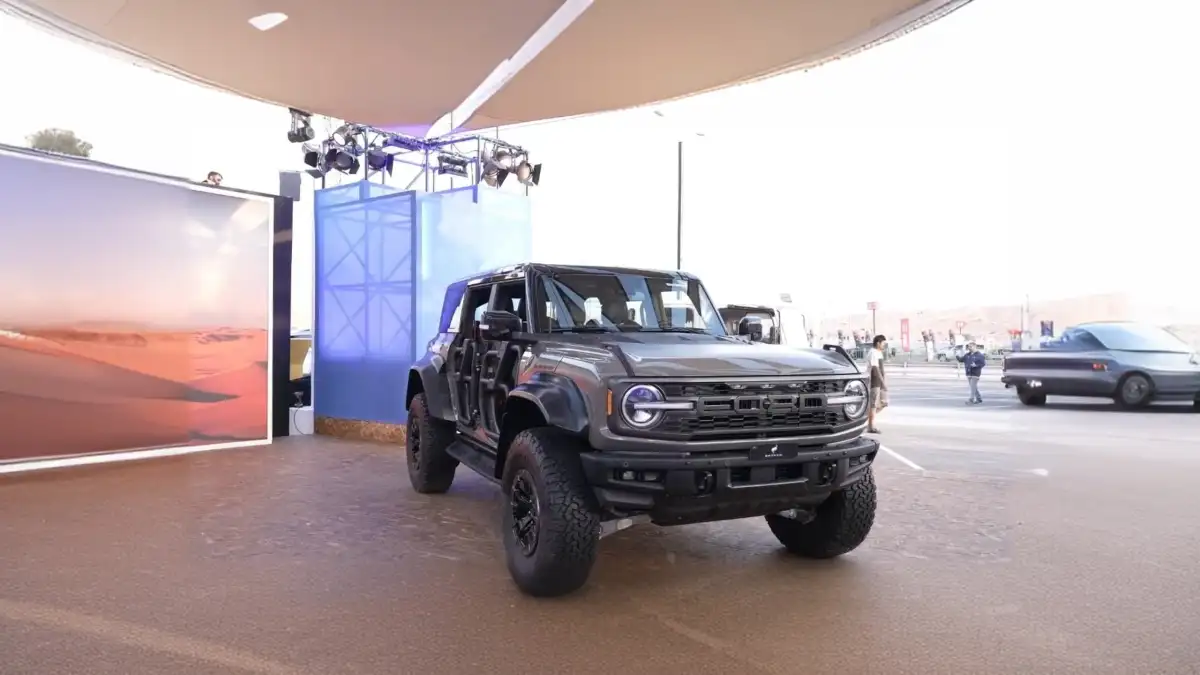 Bronco’s bold styling instantly draws attention at Liwa, showcasing strong lines and sharp angles that reflect its adventurous identity. With removable roof and doors, the Bronco creates a unique sense of freedom and open air excitement under the vast desert sky.