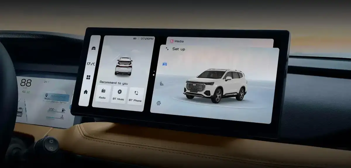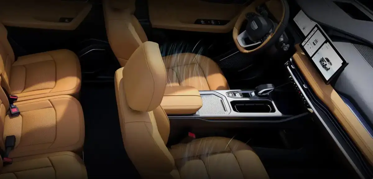 The Geely OkavangoUAE Geely OkavangoKSA Geely OkavangoKuwait Geely OkavangoOman Geely OkavangoQatar Geely OkavangoEgypt Geely OkavangoBahrain Geely Okavango features a thoughtfully engineered design that maximizes interior space. With a length of 4,860 mm, a width of 1,910 mm, and a wheelbase of 2,825 mm, the SUV offers generous seating room, especially in the second row, where three adults can sit comfortably. This level of spaciousness is rare in its price category.