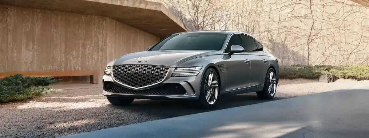The 2025 Genesis G80 makes a striking impression with its exterior design, featuring LED technology in both the front and rear lights, as well as in daytime running lights.