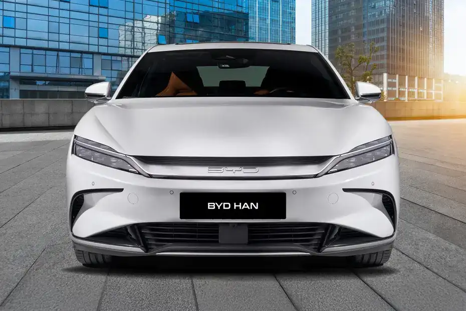 Han: A luxury electric sedan with 509 hp and all wheel drive. It sprints from 0 to 100 km/h in just 3.9 seconds and provides a range between 520 and 565 km. Highlights include a 15.6 inch rotating display, adaptive air suspension, and a price of about AED 231,900.