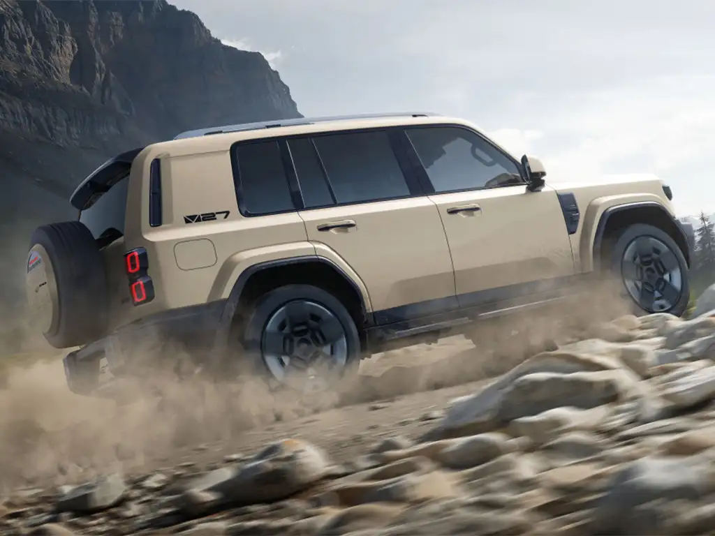 The iCaur V27 is based on a Range-Extended Electric Vehicle (REEV) system, where electric motors drive the wheels while a gasoline engine functions solely as a generator to recharge the battery when needed.