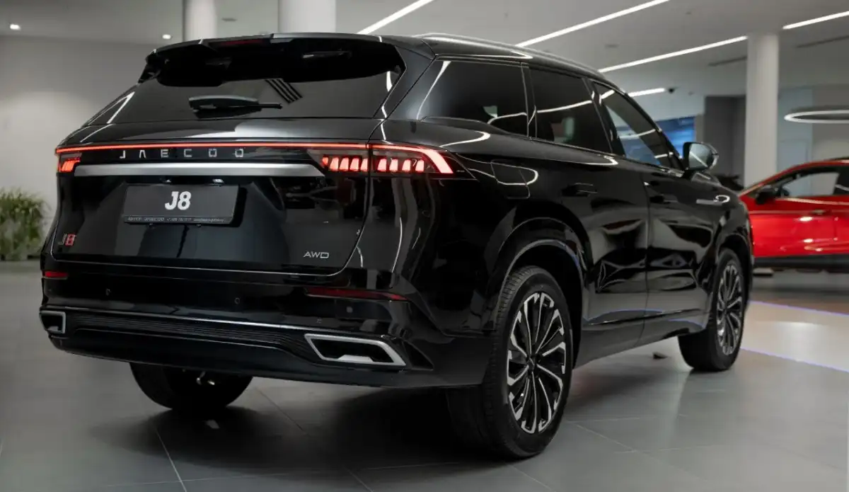 The Jaecoo J8 uses a 2.0‑liter turbo engine with around 261 hp, paired with an advanced AWD system.