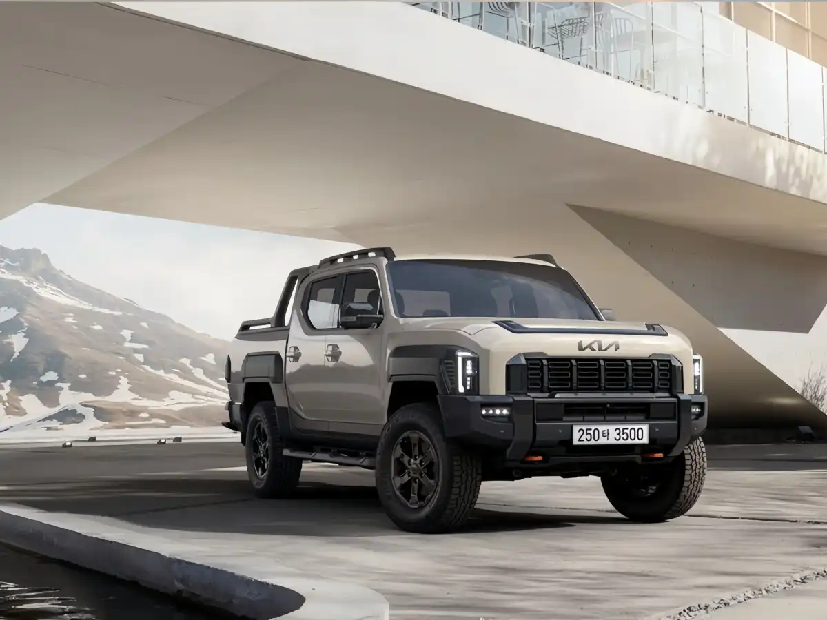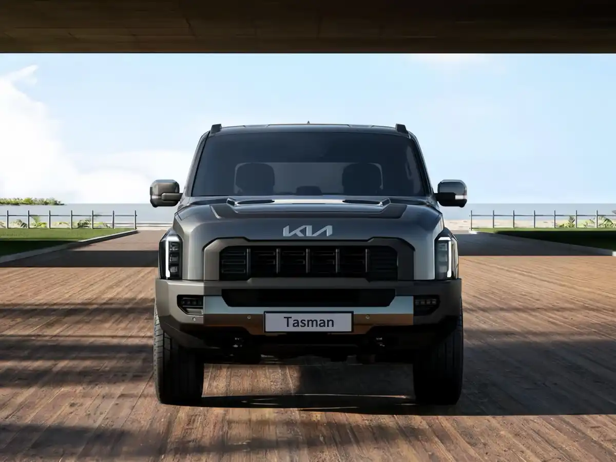 The Kia Tasman boasts a muscular and aggressive design that stands out in the pickup segment.