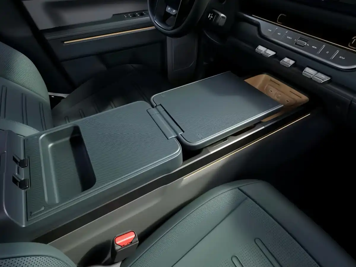 A unique highlight is the armrest box cover, which opens up to become a workstation or entertainment space—a practical addition for long trips or job sites.