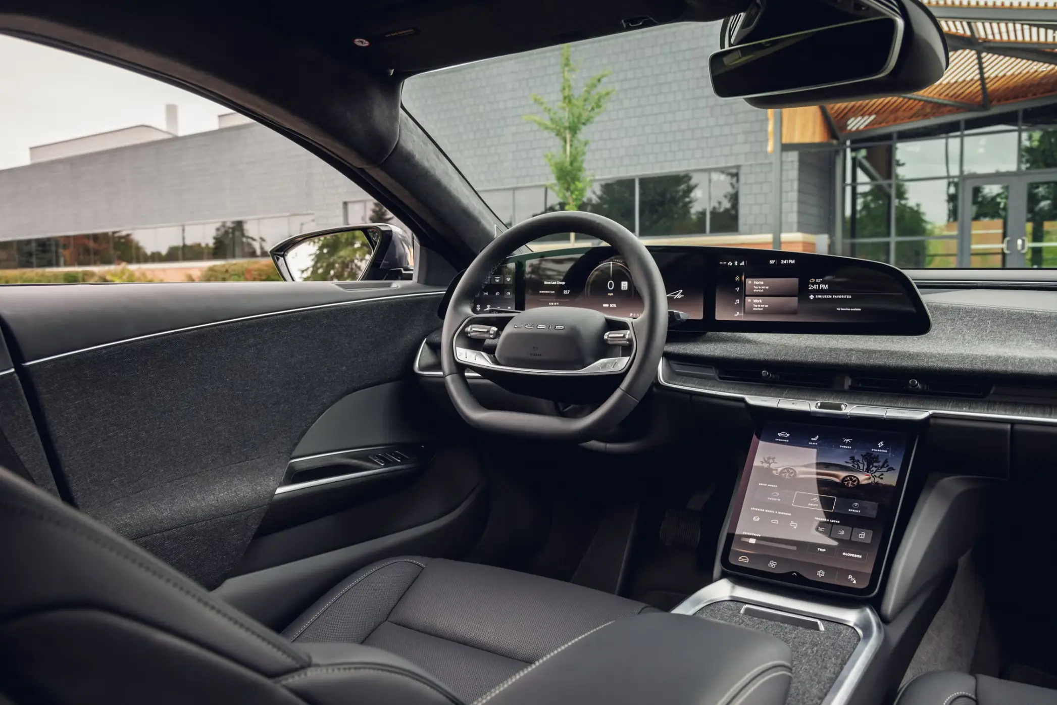 Inside, the Lucid Air offers a spacious and refined cabin that blends technology with artistry. Premium materials, quiet comfort, and intuitive controls elevate every drive, making it ideal for long distance travel across the Kingdom.