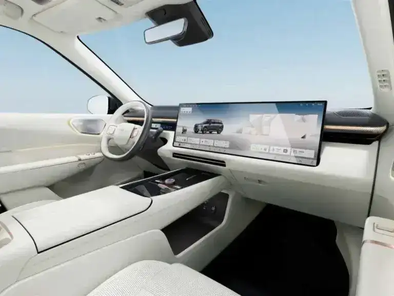 Stepping inside reveals a cabin dressed in premium materials and transparent trims that achieve a three dimensional effect via vacuum coating technology. Ambient lighting sets a refined mood around a 30 inch 6K infotainment display driven by a Snapdragon 8295 processor for instantaneous responsiveness.
