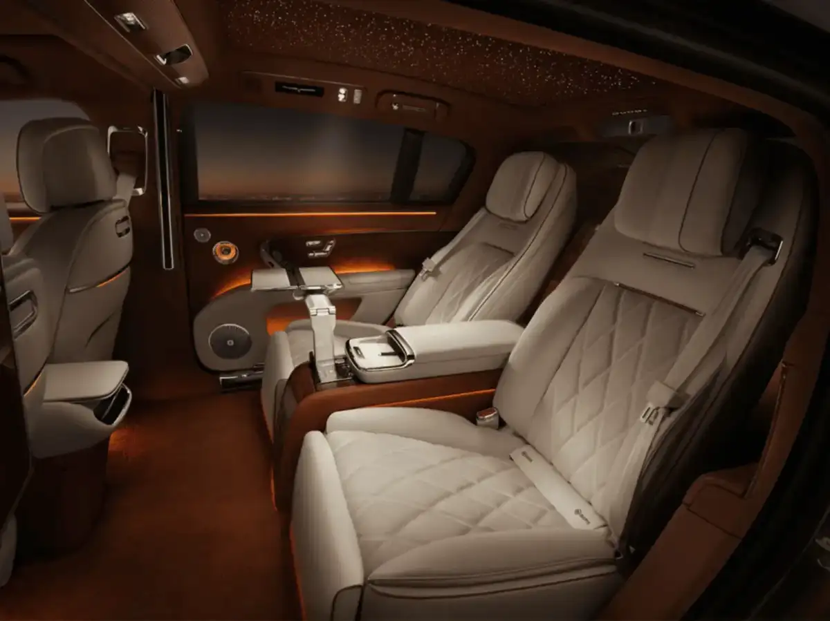 Inside the cabin, luxury takes center stage with the use of soft touch natural calf leather and high grade imported wood, carefully matched for seamless grain alignment. Hand polished crystal accents embellish the control knobs and switches, adding a layer of artisanal finesse. Crowning the interior is a wide panoramic roof that mirrors a starry night sky, complete with interactive lighting effects such as the “meteor shower,” offering passengers a poetic and fully immersive sensory experience.