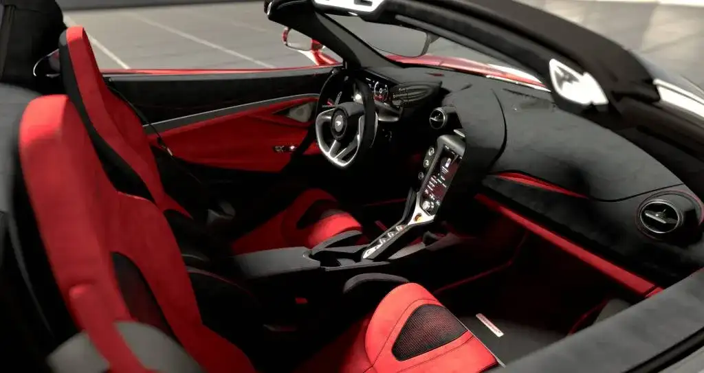 The new model year also includes the option of black badging for the exterior and a black McLaren logo on the wheel center caps. Also new on the options list are vented front fenders with a gloss carbon-fiber finish for the vents, plus an engine stop-start button finished in McLaren's signature Papaya orange.