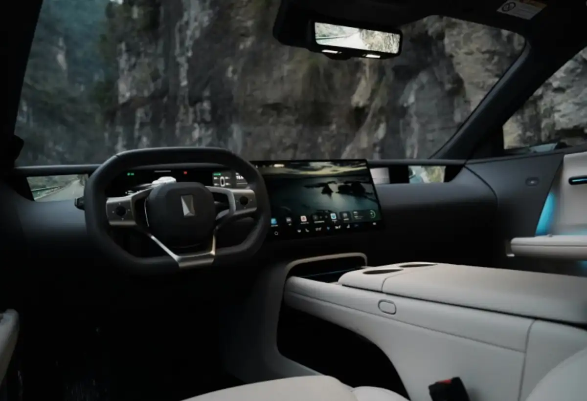 The Avatar 06's interior includes a large 35.4-inch screen covering the center console, serving as both a digital instrument cluster and a front-seat entertainment system. The main screen is 15.6 inches. Side-view camera displays are located in the center console, allowing the driver to monitor their surroundings without having to turn their head. Other interior features include 25 Meridian speakers and Nappa leather seats.