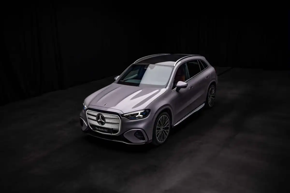 The exterior design retains the recognizable GLC identity but with modern touches tailored to its EV character.