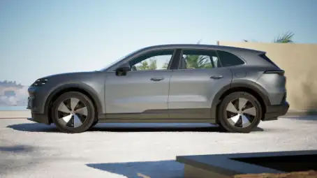 The Porsche Cayenne Electric retains the strong design language that established its position in the luxury SUV segment, enhanced by more streamlined styling cues that reflect its modern electric direction. A clear focus on aerodynamic efficiency stands out in the exterior lines, improving overall efficiency while supporting high speed performance on highways. This balance between sporty character and family friendly practicality remains evident, as the SUV offers a spacious cabin suited for daily use and long distance journeys, paired with a premium presence that aligns with the Porsche badge.