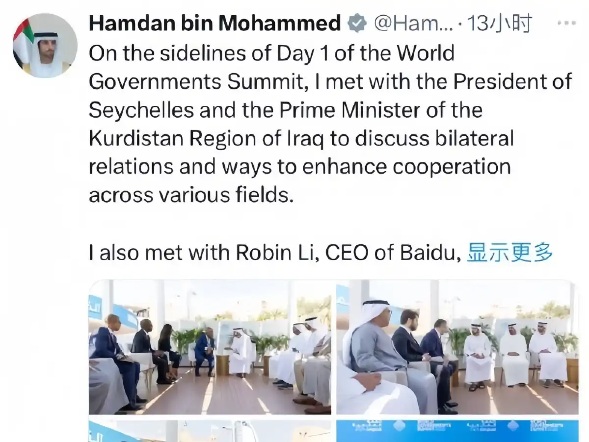 At the 2025 World Government Summit (WGS) in Dubai, Baidu’s founder, chairman, and CEO, Robin Li, had a high-profile discussion with Omar Sultan Al Olama, the UAE’s Minister of AI. The conversation attracted significant media attention.