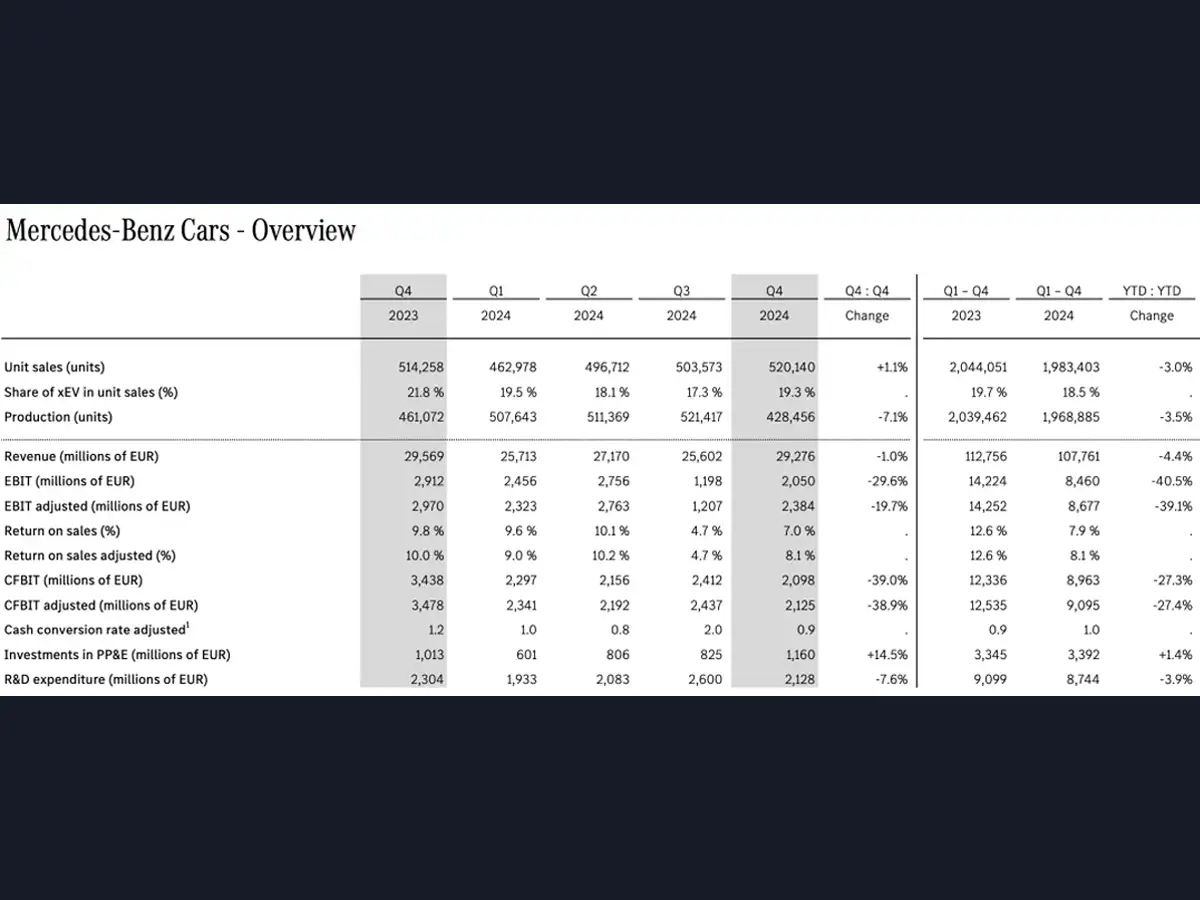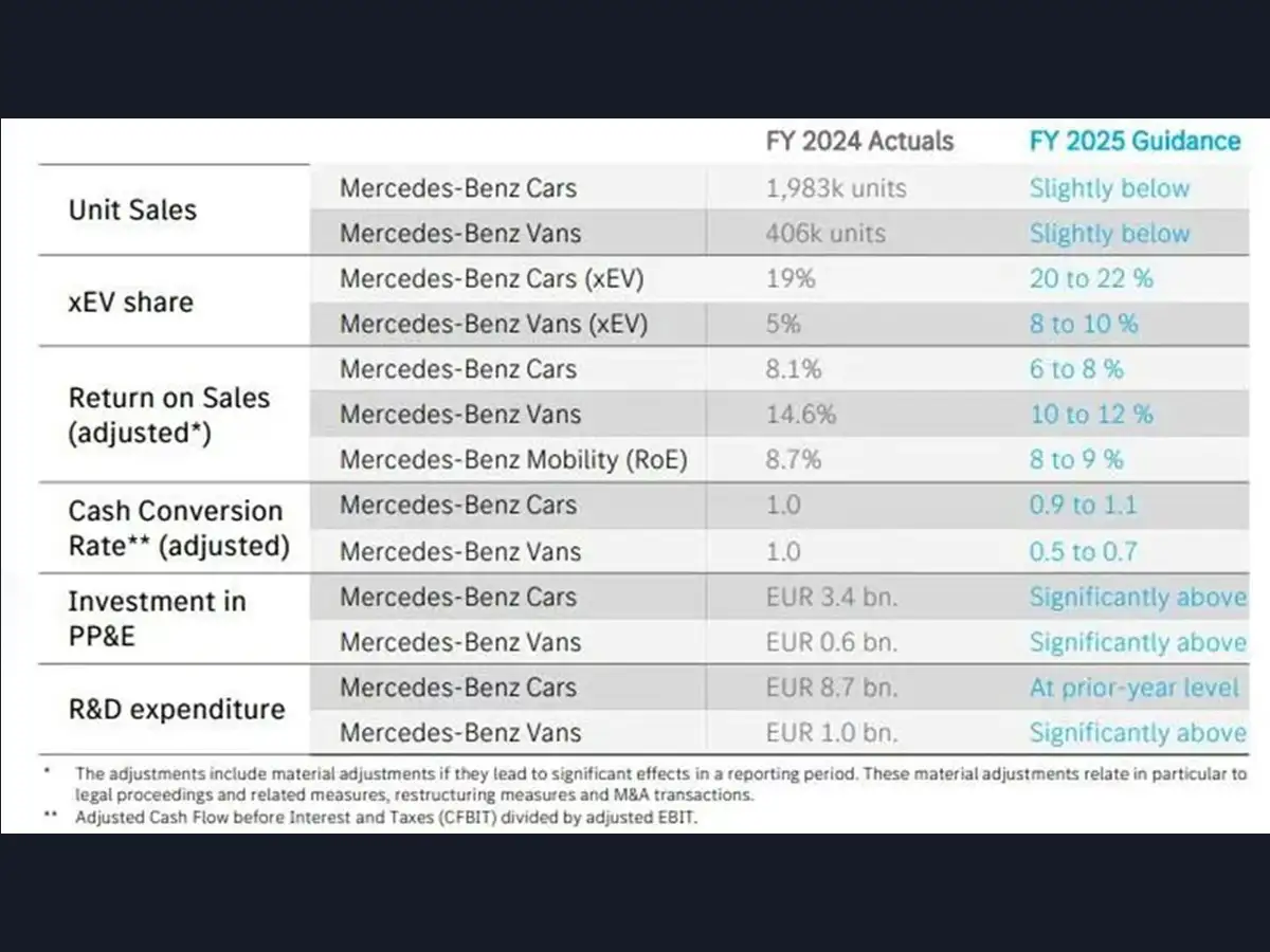 For 2025, Mercedes-Benz projects that global sales and revenue will decline slightly compared to 2024, while EBITDA and free cash flow will drop significantly.