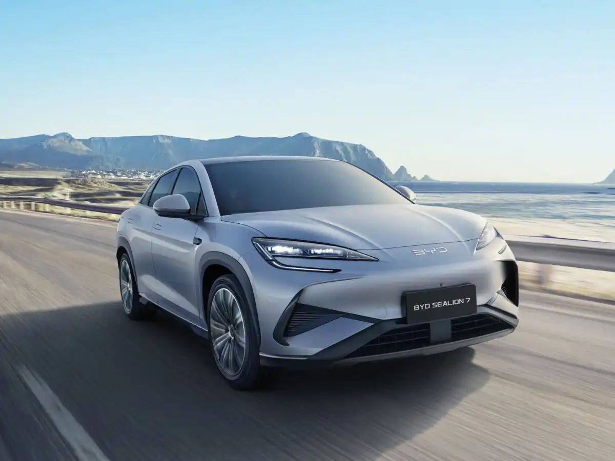 SEALION 7 features a sleek coupe-SUV design with an aerodynamic and elongated body.