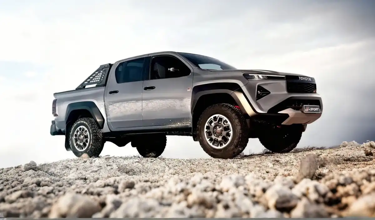 Following patent illustrations and rendered images, the Hilux is expected to feature sleeker headlights and an overall front redesign that emphasizes ruggedness, including a robust bumper for off-road appeal. The GR Sport variant promises a bolder look, integrating a honeycomb grille, a bulky bumper, and specialized off-road tires to match its enhanced sporty character.