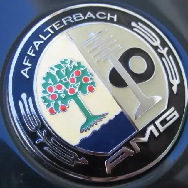 On the left side, the emblem features an apple tree by a flowing river, a direct reference to the coat of arms of Affalterbach, Germany, where AMG is headquartered. This fusion of technical symbolism and local heritage reflects AMG’s philosophy: blending cutting edge performance with an authentic identity rooted in tradition.