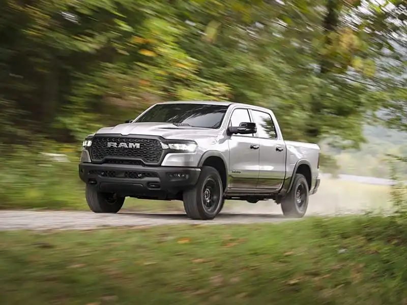 The RAM 1500KSA RAM 1500Kuwait RAM 1500Qatar RAM 1500Bahrain RAM 1500Egypt RAM 1500Oman RAM 1500UAE RAM 1500 has a rich history dating back to 1981, when Chrysler first introduced the Ram series. Since then, the brand and its models have evolved. The second-generation RAM debuted in 1994, and in 2009, RAM became its own brand, separate from Dodge. The RAM 1500, 2500, and 3500 are its flagship models. RAM pickups range from 5,815 to 6,030 mm in length, with a wheelbase between 3,570 and 3,685 mm and a cargo box depth of 1,700-1,980 mm. Powertrain options include a 3.6L V6 gasoline (227 kW/369 Nm), 5.7L V8 gasoline (295 kW/555 Nm), 6.2L V8 gasoline (523 kW/881 Nm), and a 3.0L diesel (194 kW/650 Nm). Most models feature an 8-speed automatic transmission.