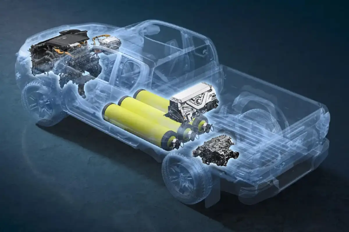The Hilux uses hydrogen fuel cells to generate electricity through a chemical reaction between hydrogen and oxygen, with water being the only byproduct, in stark contrast to electric vehicles that rely on lithium batteries.