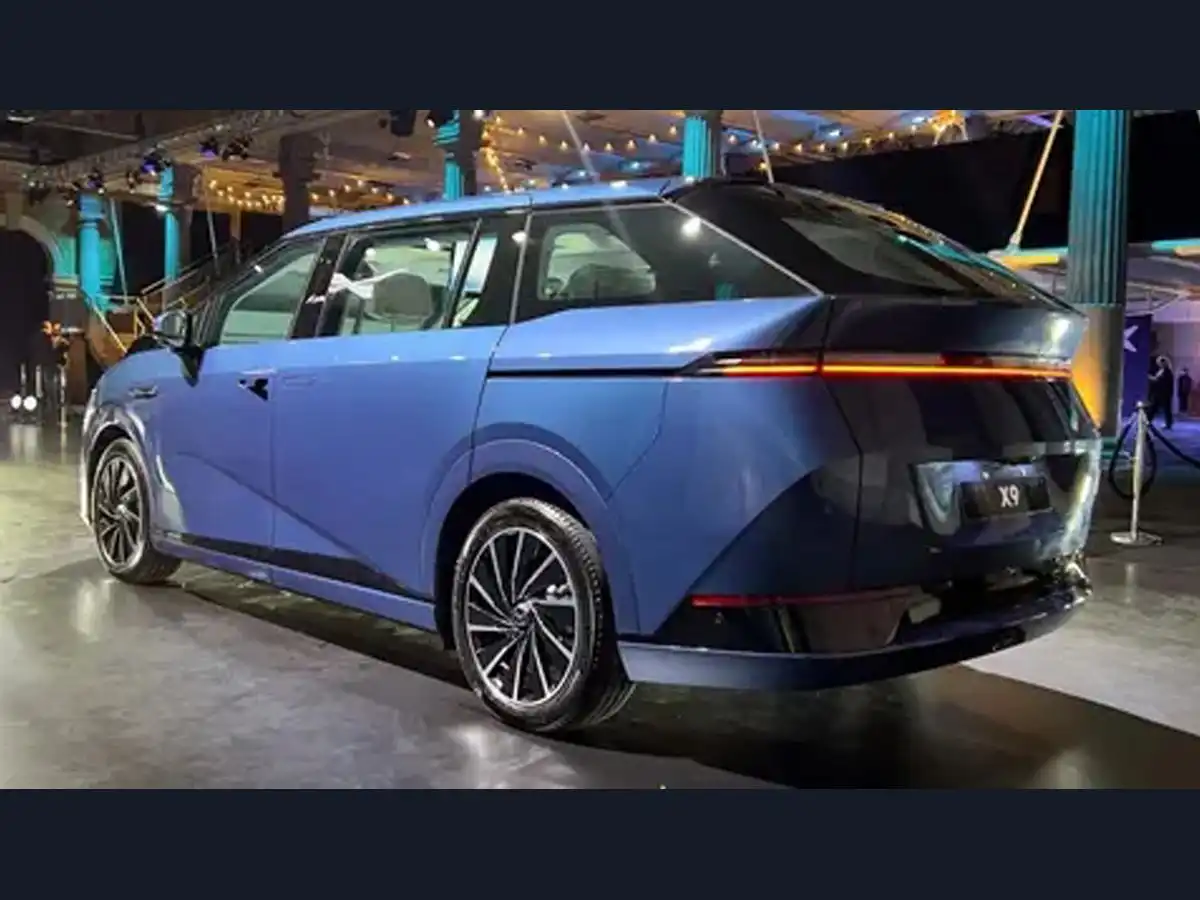 The roofline slopes downward from the D-pillar, giving the rear hatch a distinctive diagonal angle. In terms of size, the Xpeng X9 measures 5,293 mm in length, 1,988 mm in width, and 1,785 mm in height, with a wheelbase of 3,160 mm.