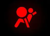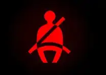 Additional alerts include the seatbelt warning, which reminds the driver to buckle up, and the airbag symbol, indicating a potential issue with the airbag system.