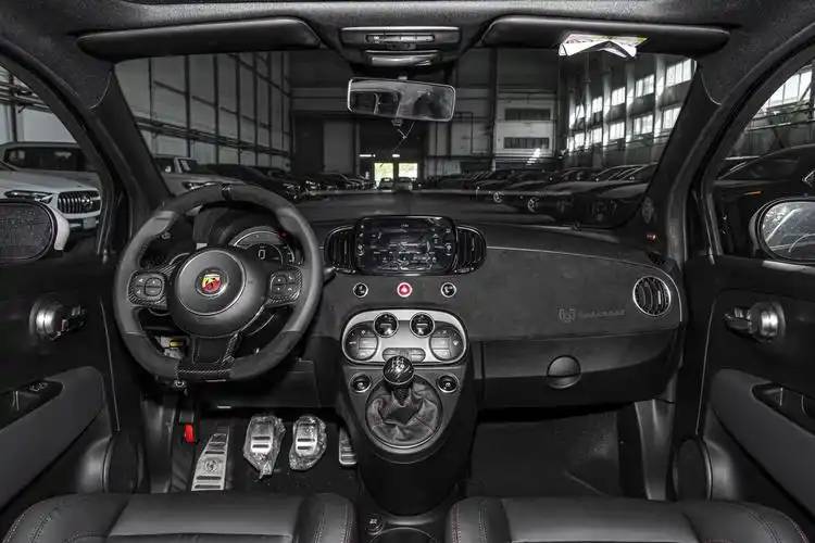 The Abarth 695 2024 1.4T Turismo (Hard-Top) impresses with its sleek and dynamic exterior. Its alloy wheels, panoramic sunroof, and chrome-plated radiator grille blend practicality with a sporty appeal. The LED taillights, bi-xenon headlamps, and numerous chrome details enhance its modern, aggressive look, leaving a lasting impression on any onlooker.