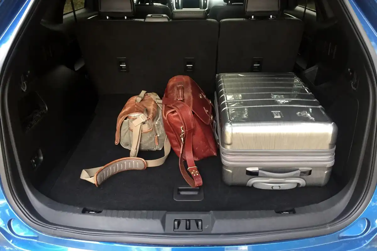 The cargo space comfortably fits 4 full-size suitcases along with 2 carry-ons when using the two-row mode, making it ideal for urban travel.