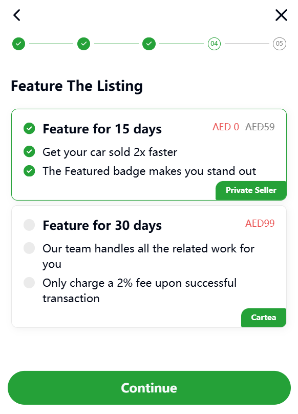 On Cartea, you can choose how you want to list your vehicle. The options typically include: