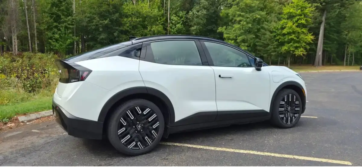 Despite the crossover look, ground clearance actually drops vs the old Leaf—and overall height and length are trimmed for a more athletic stance.